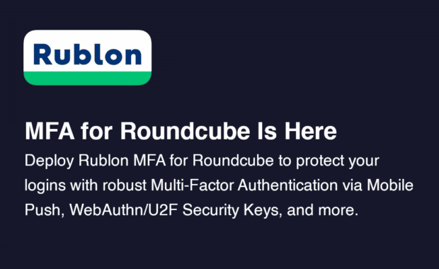 We are proud to announce that our connector for Roundcube is here. You can now use Rublon Multi-Factor Authentication (MFA) to protect your Roundcube