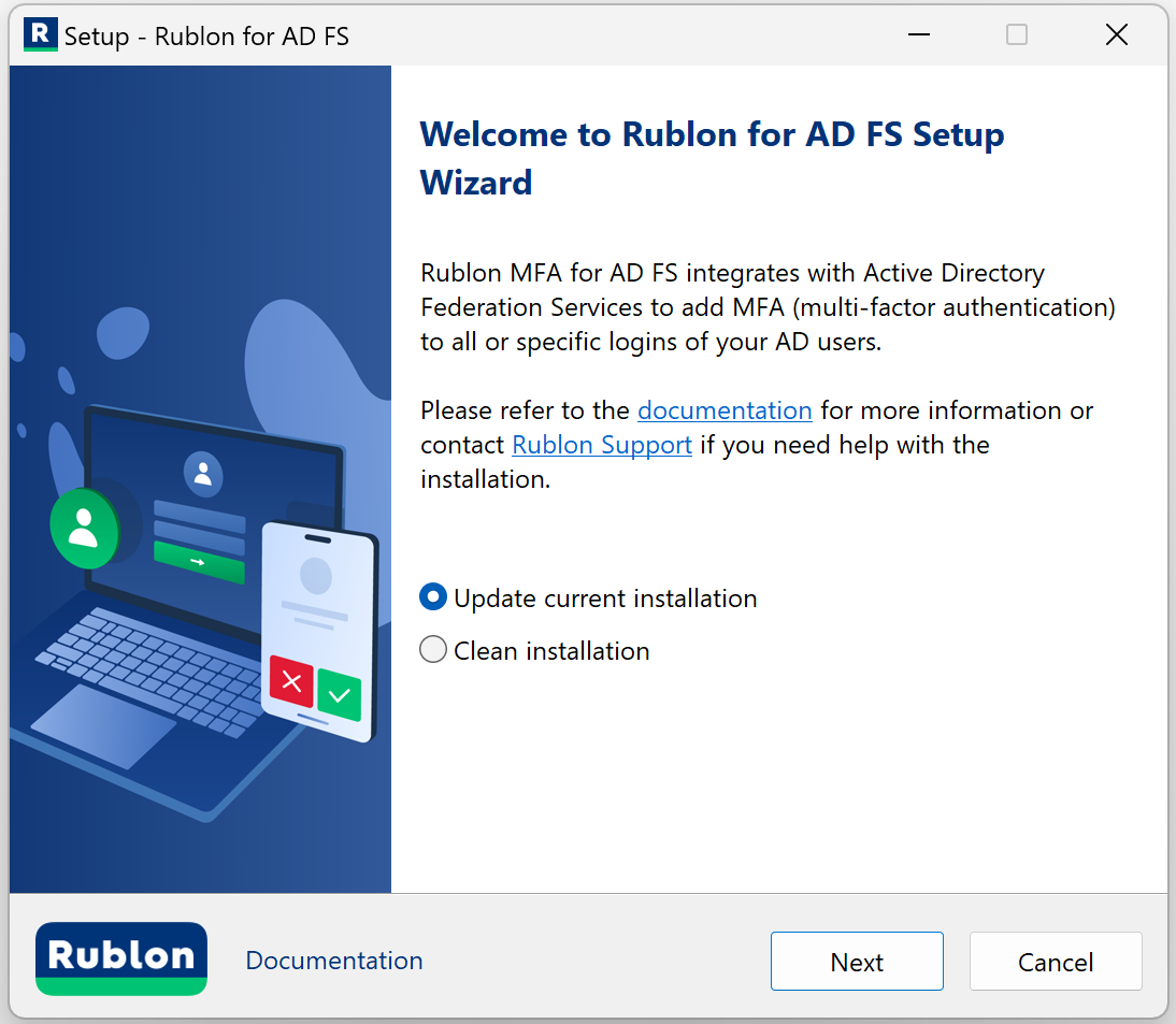To update your Rublon MFA for AD FS connector, download and install the new version on the ADFS server where you have installed the old version before.