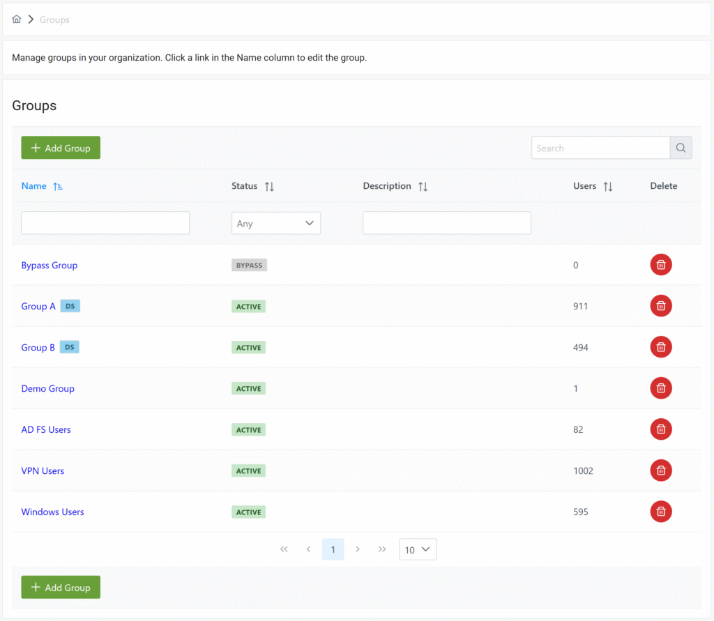 In addition to users and phone numbers, groups synchronized from your external directory will also appear in the Rublon Admin Console.
