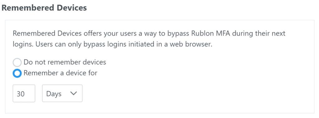 The Remembered Devices Policy minimizes MFA fatigue, balancing security and usability.