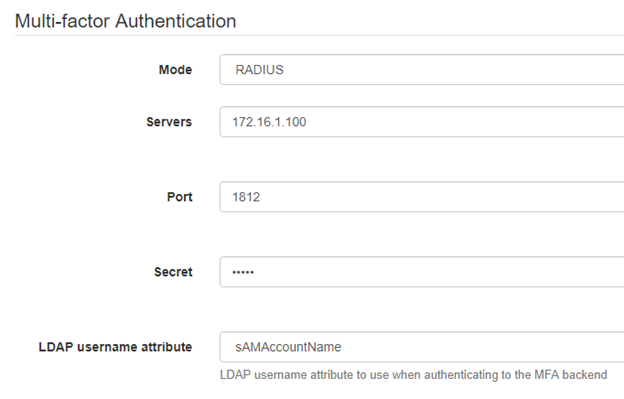| Secret | The RADIUS SECRET you set in Rublon Authentication Proxy |