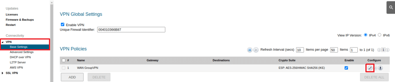 7. Click OK to save the changes you made. Clicking OK closes the VPN Policy window.