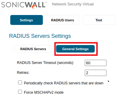 16. While still in RADIUS Servers Settings, switch to General Settings.