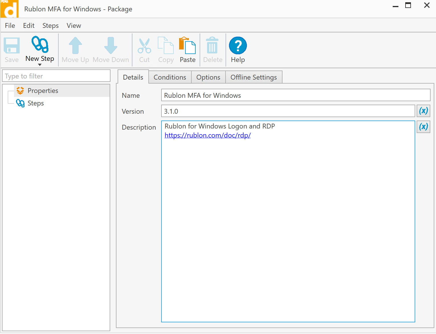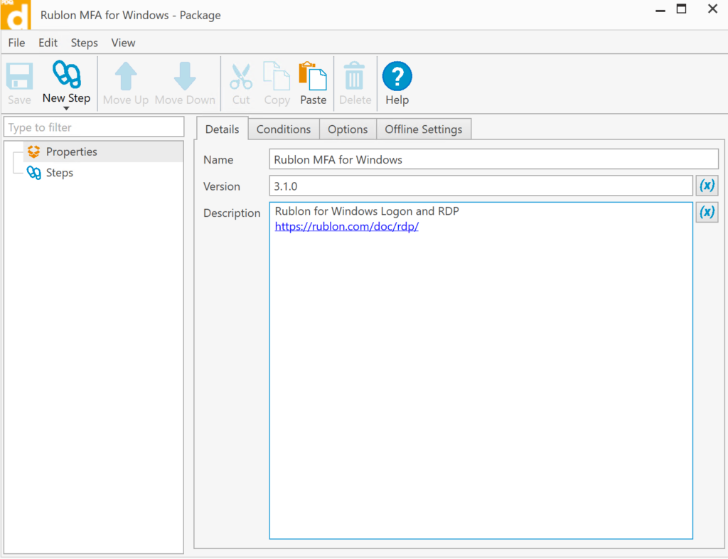 - In Description, enter a description for the package you are creating, e.g., include a link to the Rublon for Windows Logon and RDP documentation.