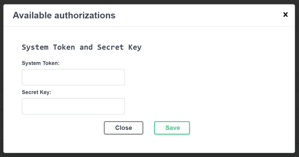 3. Enter the values of the System Token and Secret Key you saved before and click Save.