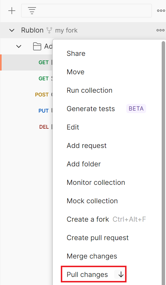 3. Postman will pull the changes and your workspace’s forked collection will be up to date with the Rublon Postman collection.