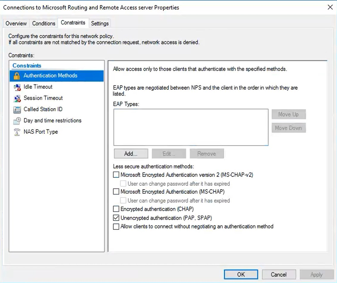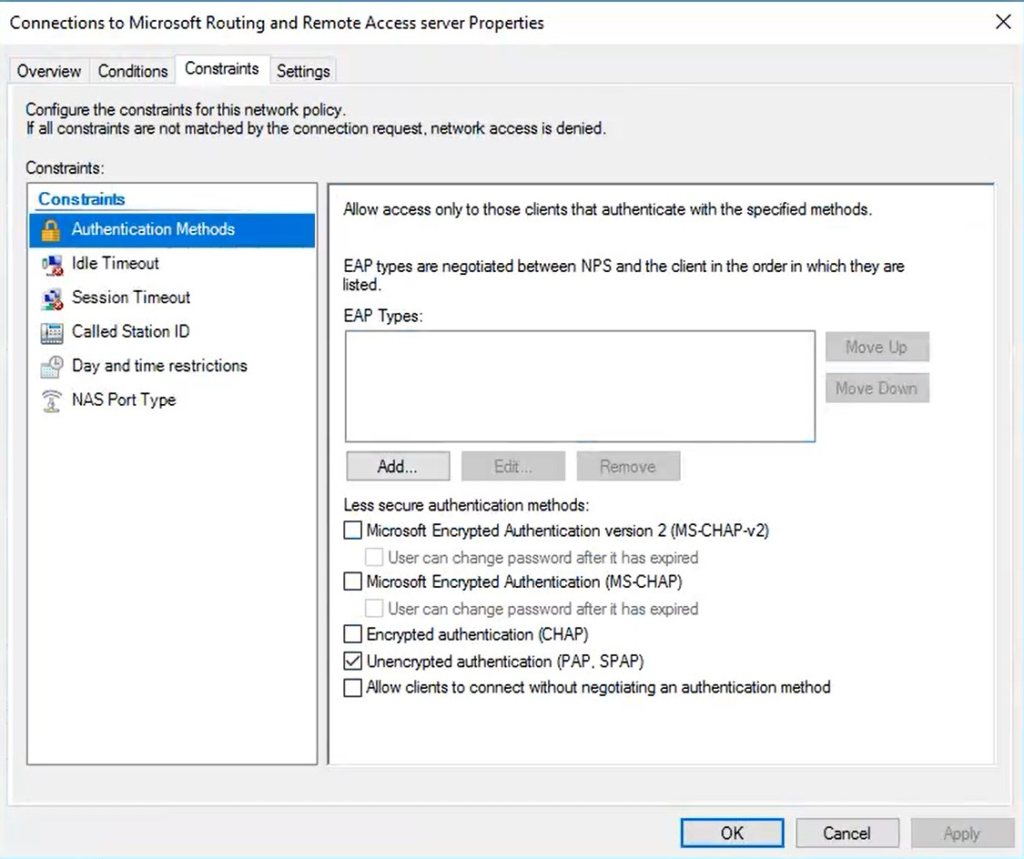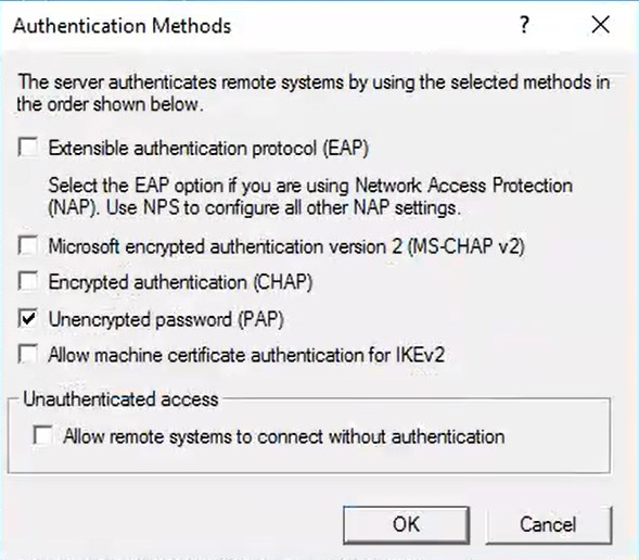 9. A new window will open. Check Unencrypted password (PAP) and uncheck every other checkbox.