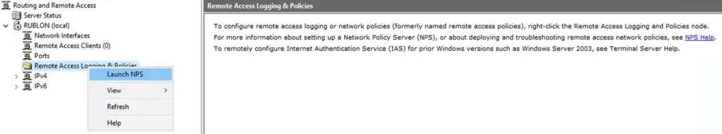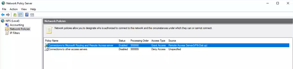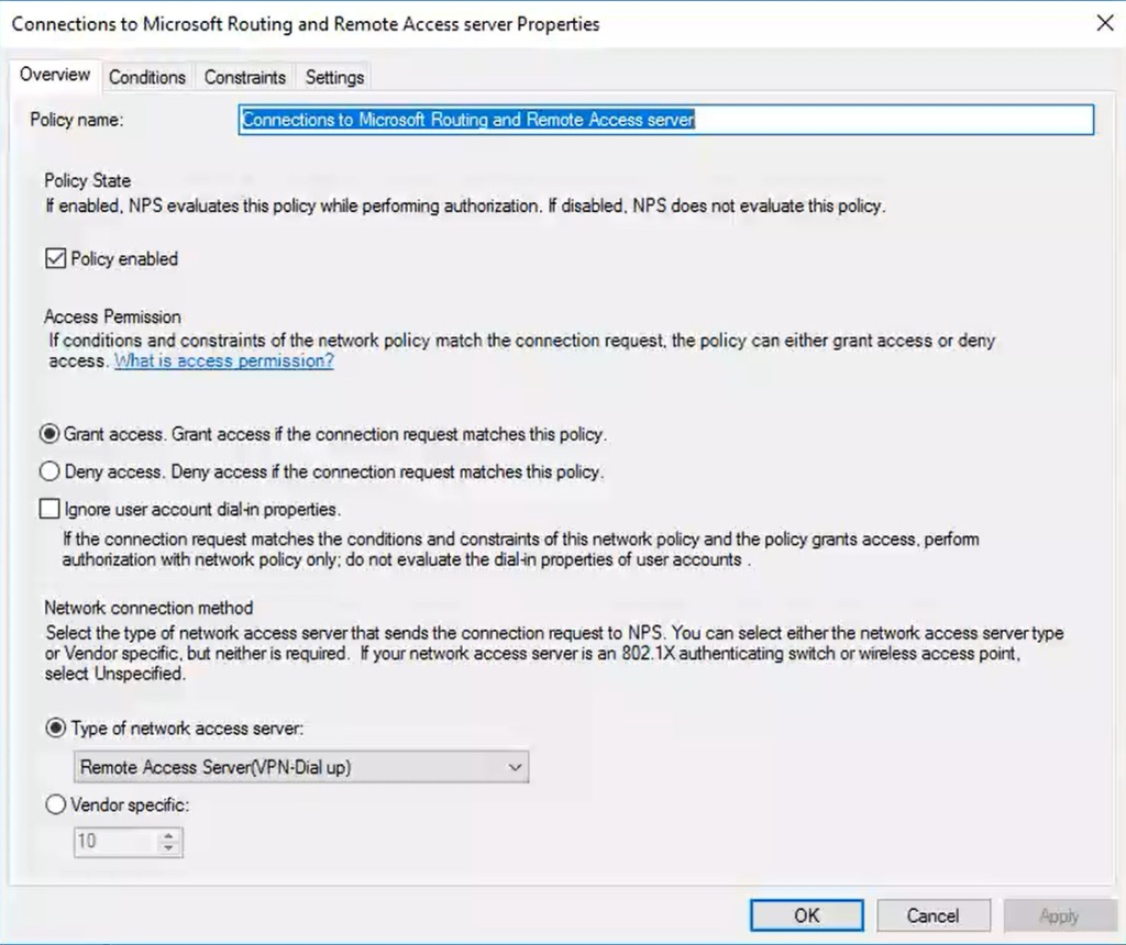 - Remote Access Server (VPN-Dial up) is selected in Type of network access server.