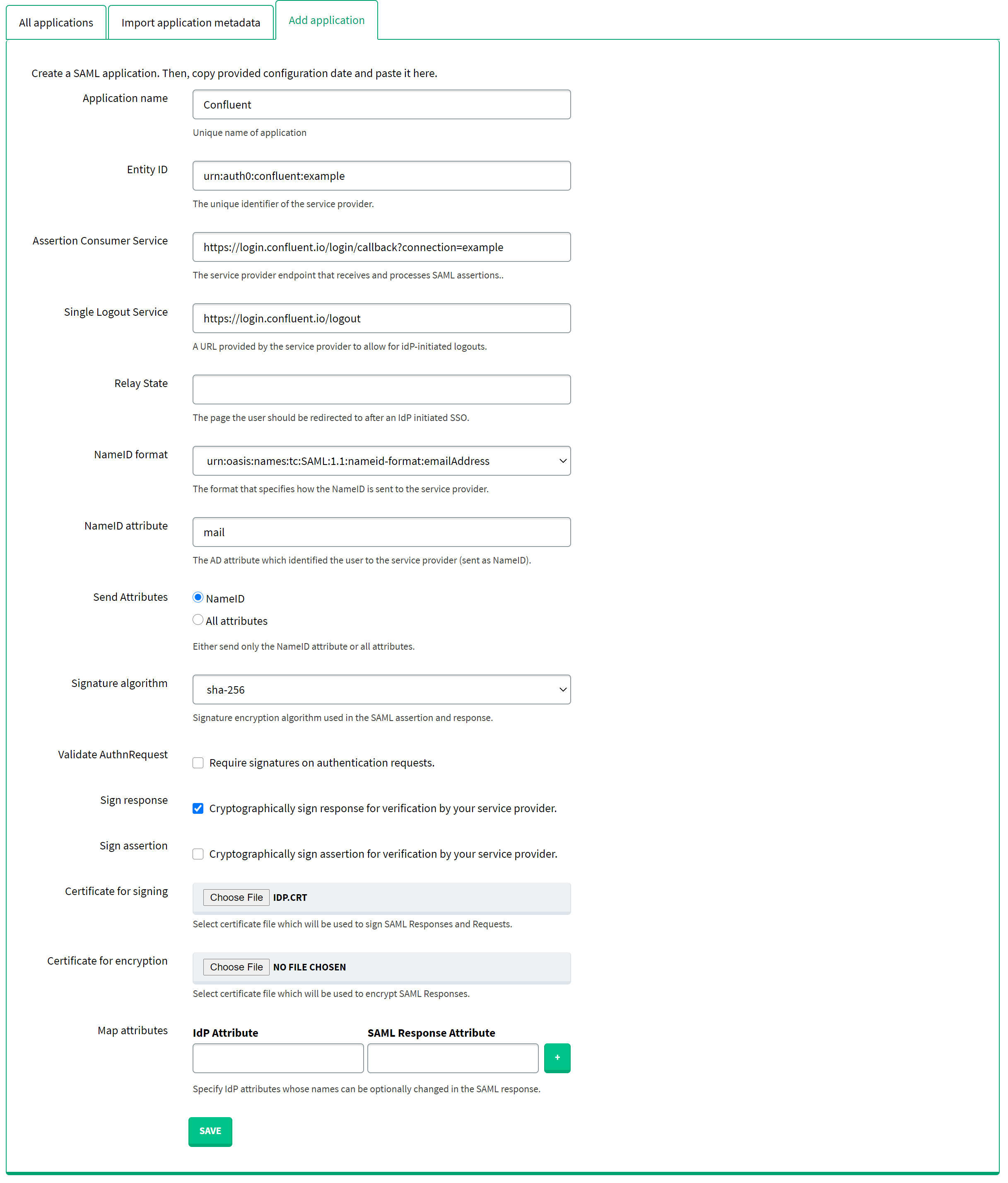 | Application name | Enter a name for the application, e.g. Confluent. The name will be displayed during Rublon 2FA. |