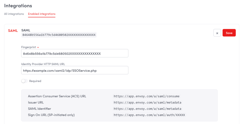 10. Click Save to add your SAML configuration.