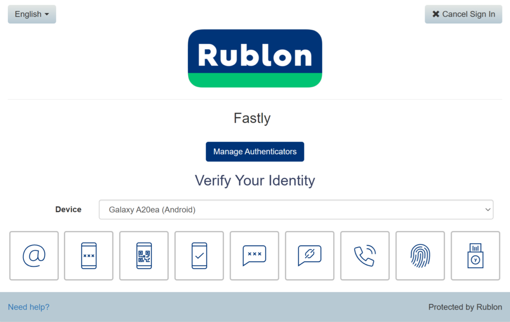 1. Fastly does not offer a form or button to log in via an Identity Provider. Go to https://example.com/saml2/idp/SSOService.php?spentityid=audience_uri to log in via Rublon 2FA.
