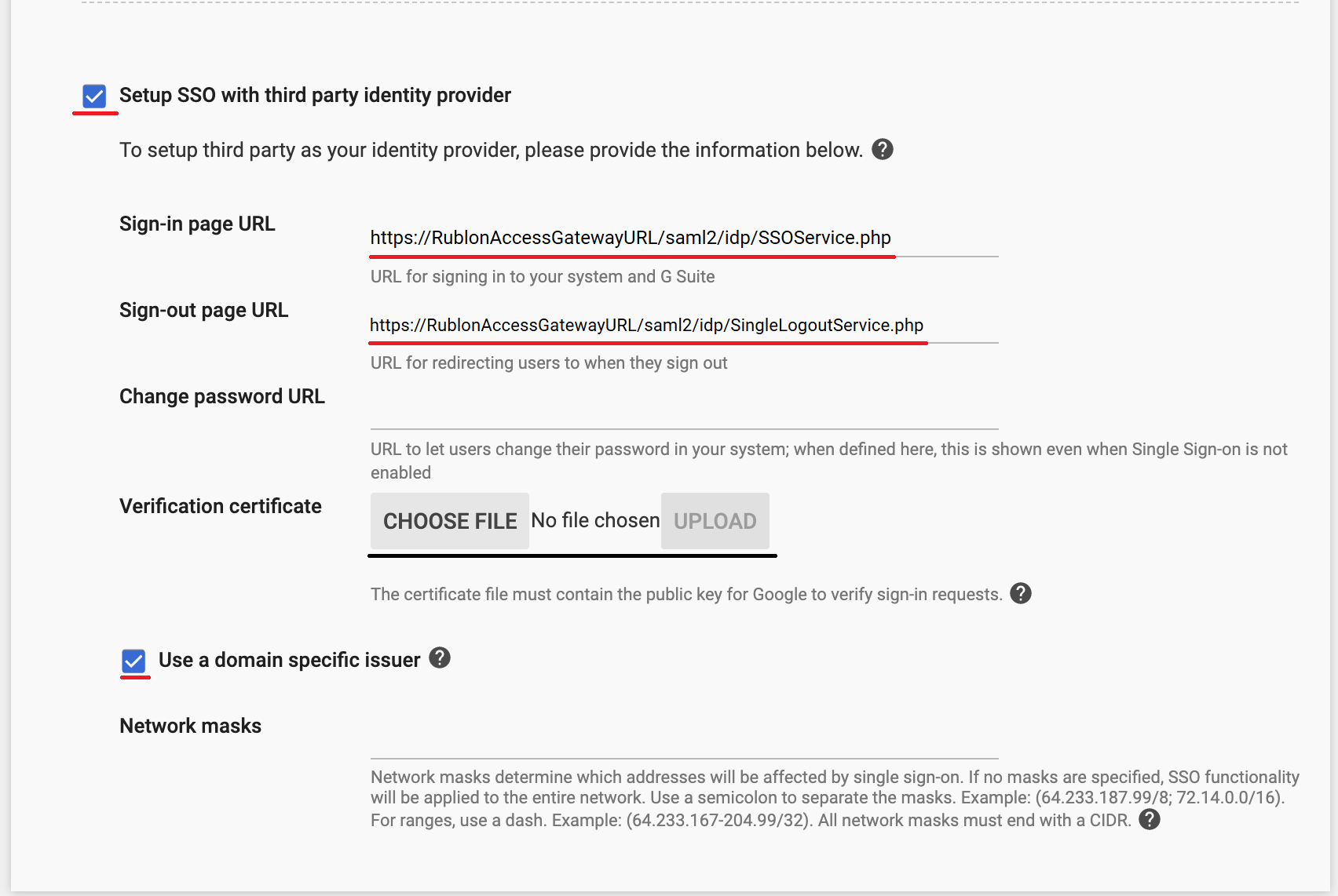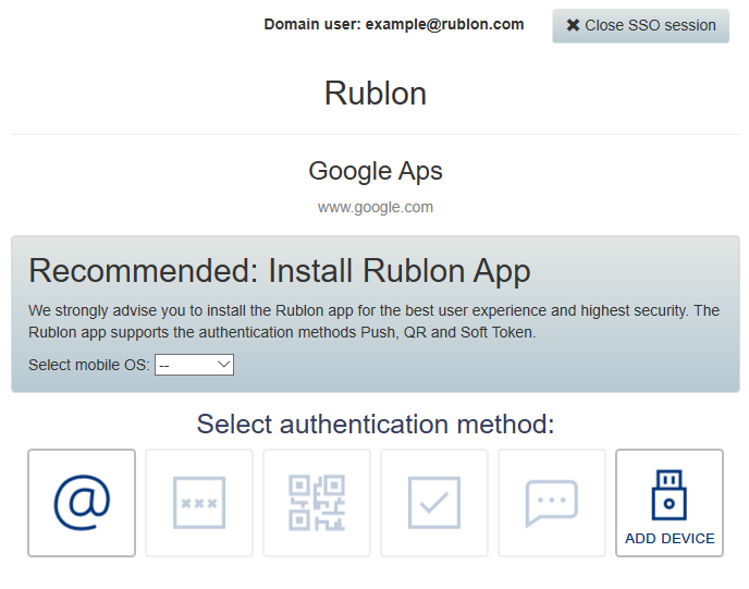 The purpose of this document is to introduce Rublon Authentication (Rublon Access Gateway) into the G Suite authentication process and enable the Two-Factor authentication process for G Suite users. To be able to achieve that, it is required to create a Rublon Access Gateway application as well as configure several SSO settings on the G Suite administration panel site. All needed steps will be described within this document.