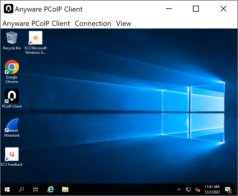 6. The HP Anyware Client will launch the session, and you will see the remote desktop.