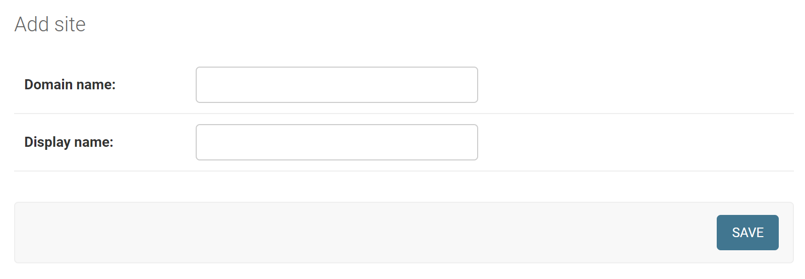 8. A new window will open. Set Domain name and Display name. Click SAVE to add the site.