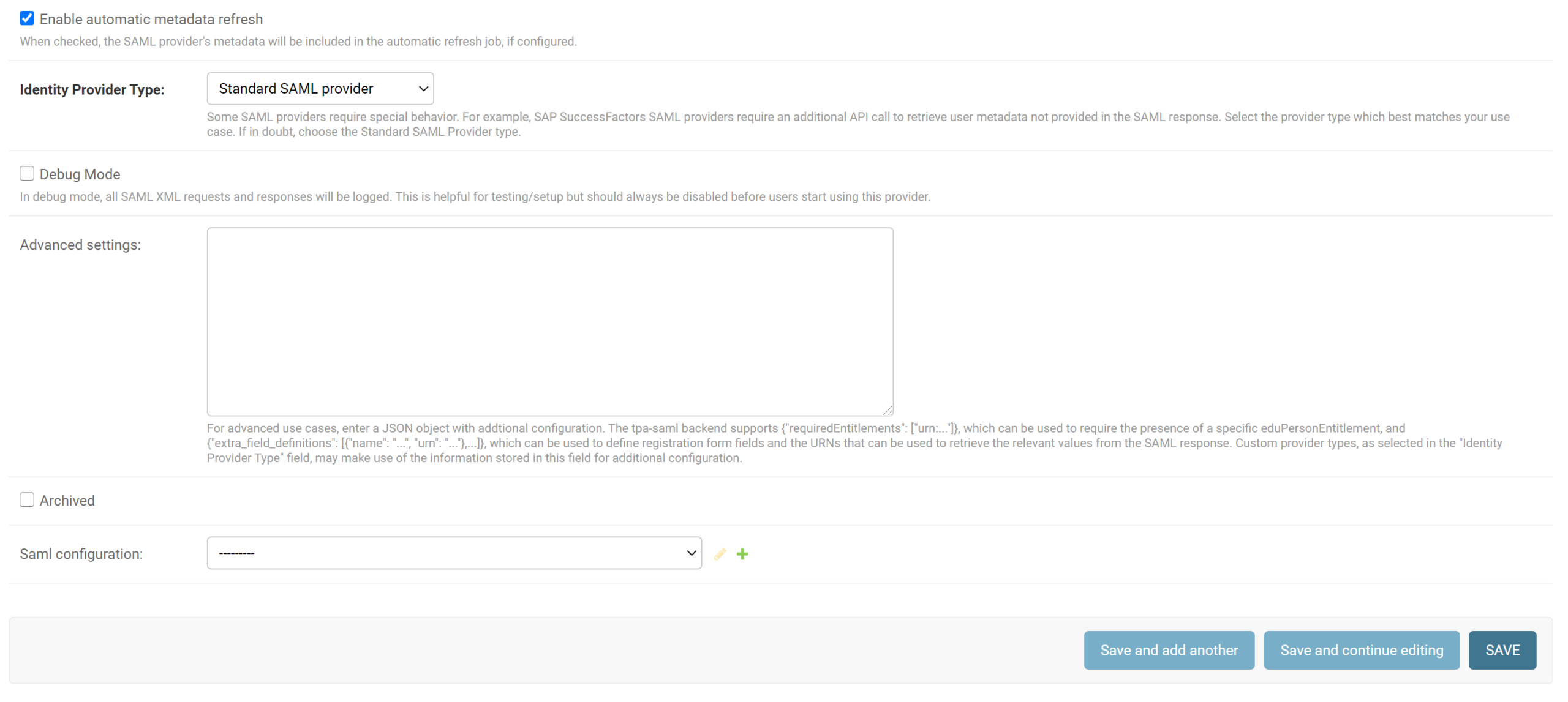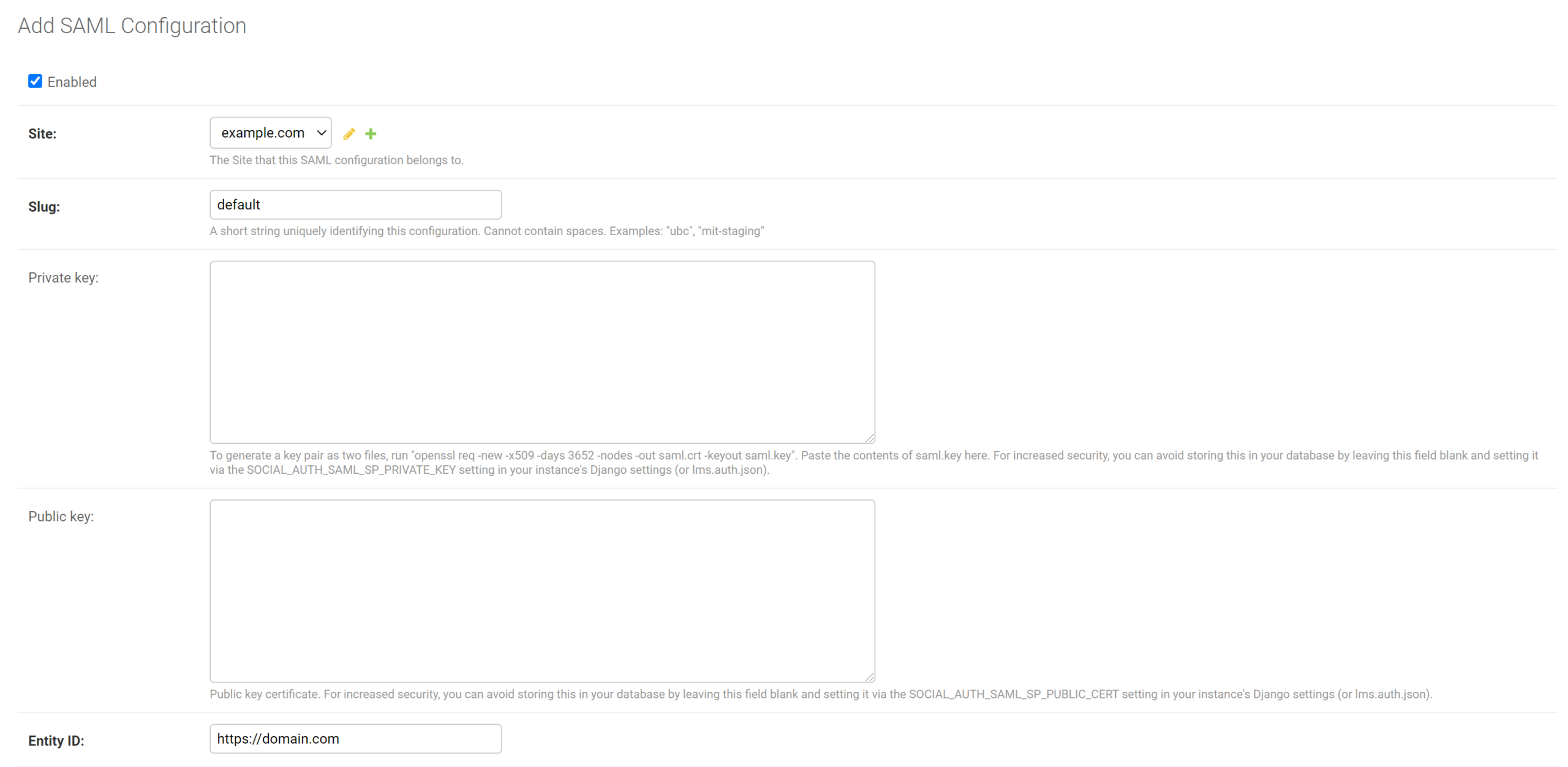 | Entity ID | Enter the Entity ID you set in step 17 of the Open edX section. |