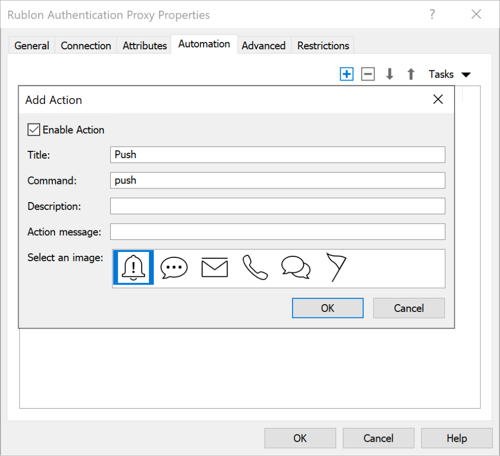 | Select an image | Select the icon displayed next to the action in the login panel of the Parallels RAS portal. We recommend you choose the bell icon for Mobile Push. |