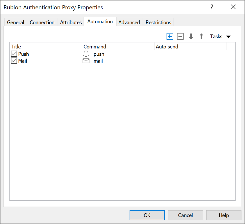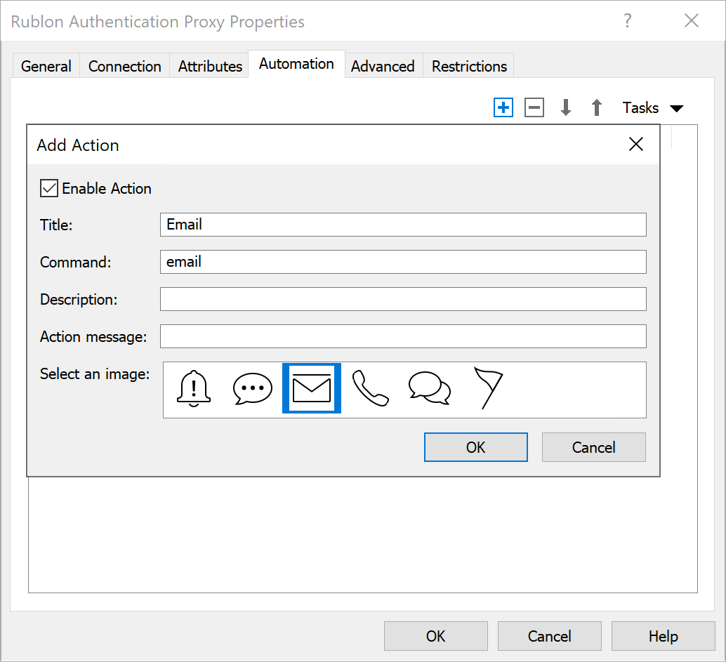 4. Click OK to save the changes. Ensure there are two actions in the Automation tab and click OK to close the properties window.