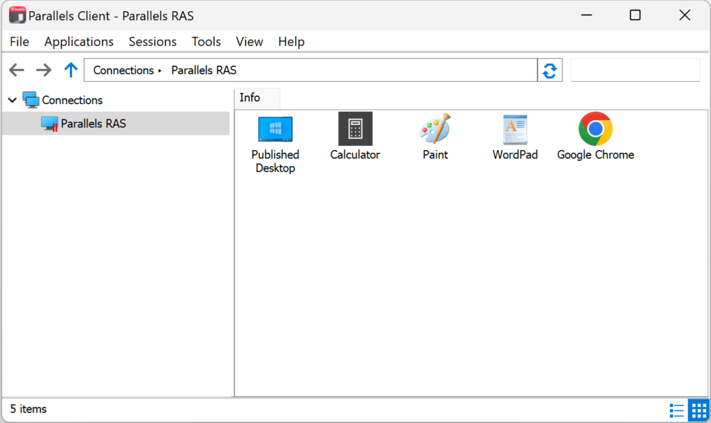 In this example, we assume you have already downloaded the Parallels client and added a connection in your Parallels Client.