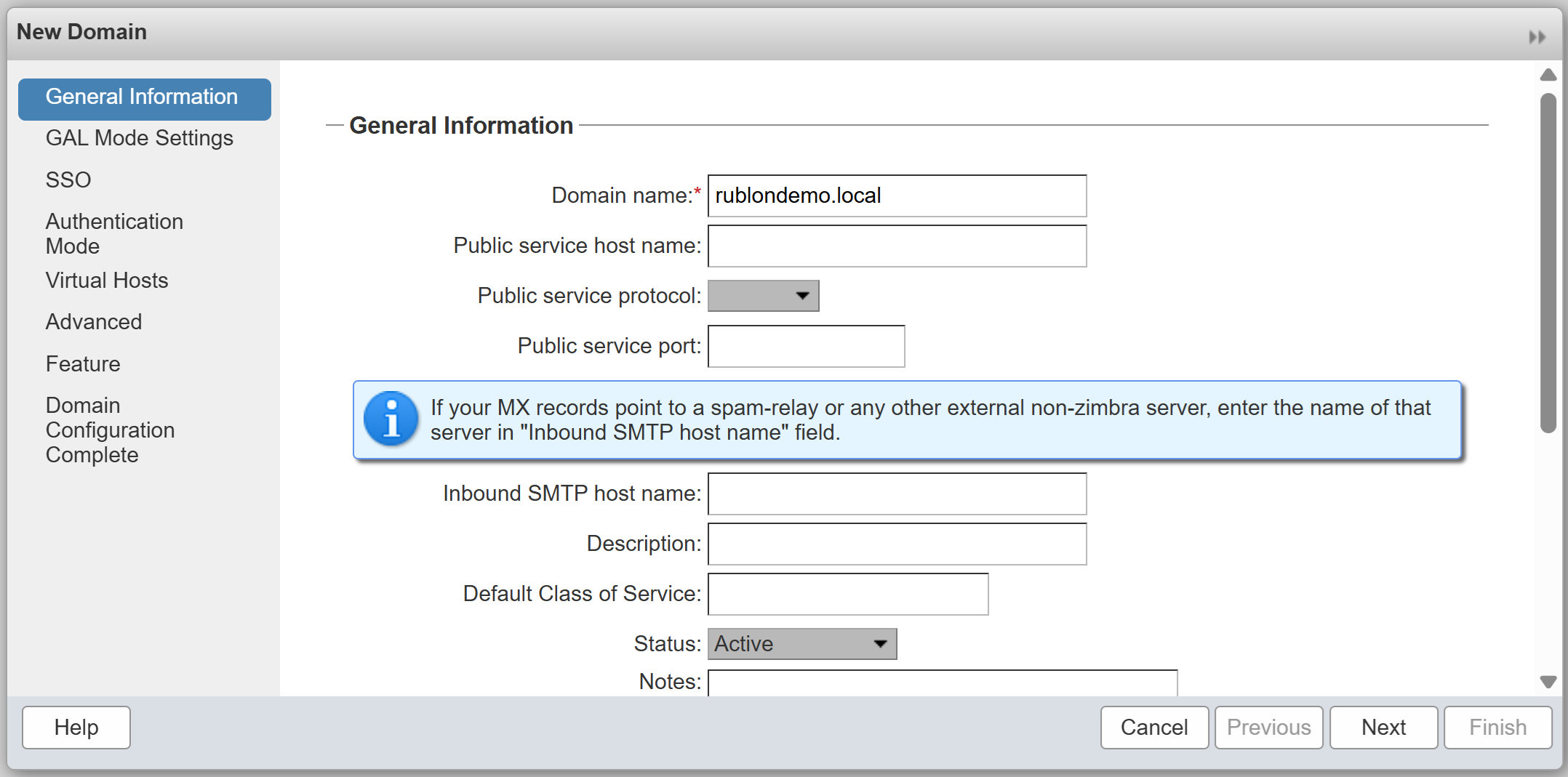 | Last name | Enter the last name of the user. (Zimbra requires this field.) |