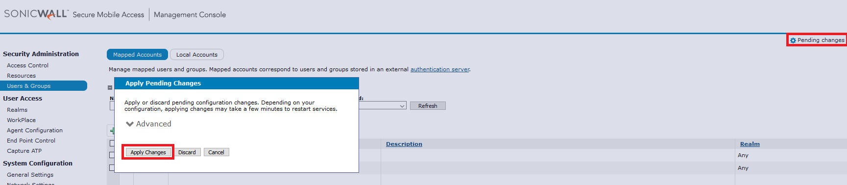 17. Clicking Pending changes in the top right corner, and then click Apply Changes.