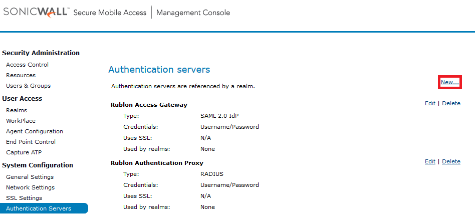 13. Select the previously created Rublon Authentication Proxy server in Authentication Server.