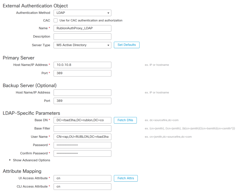 Configuring Multi-Factor Authentication (MFA) for Cisco FirePower Management using LDAP(S)