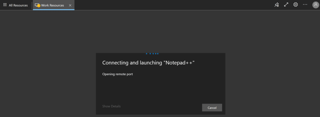 3. Remote Desktop will start connecting and launching the app you selected.