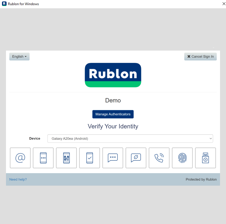 2. A window will appear with a selection of various 2FA options from Rublon.