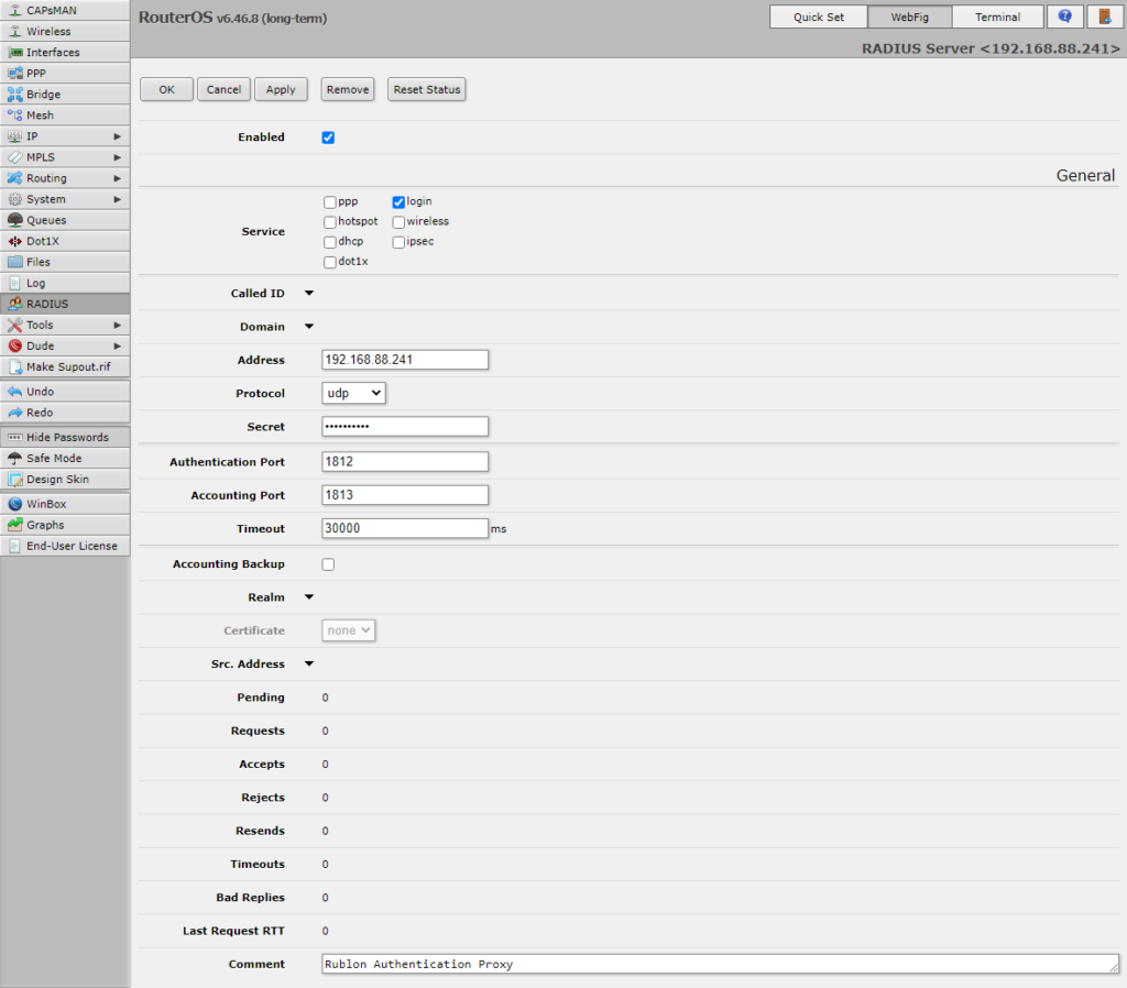 You need to install and configure Rublon Authentication Proxy before configuring MikroTik to work with it. Read Rublon Authentication Proxy and follow the steps in the Installation and Configuration sections. Afterward, follow the Configuration section in this document.