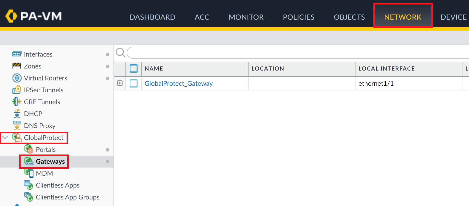 3. Click your GlobalProtect Gateway profile name to open its properties.