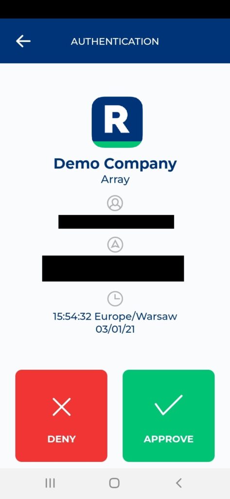 This example portrays logging in to Array AG SSL VPN via a web browser. Mobile Push has been set as the second factor in Rublon Authentication Proxy configuration (AUTH_METHOD was set to push).