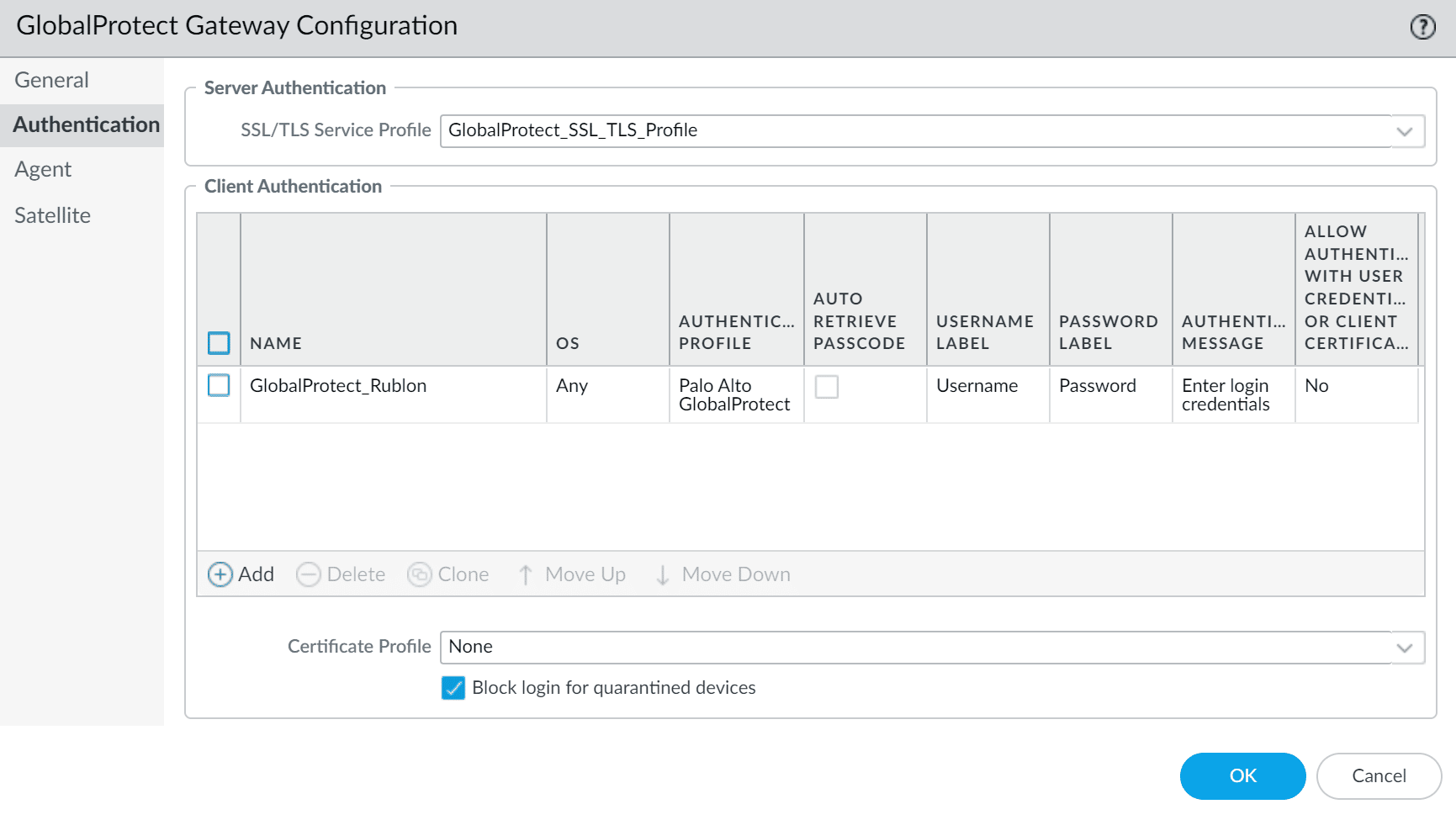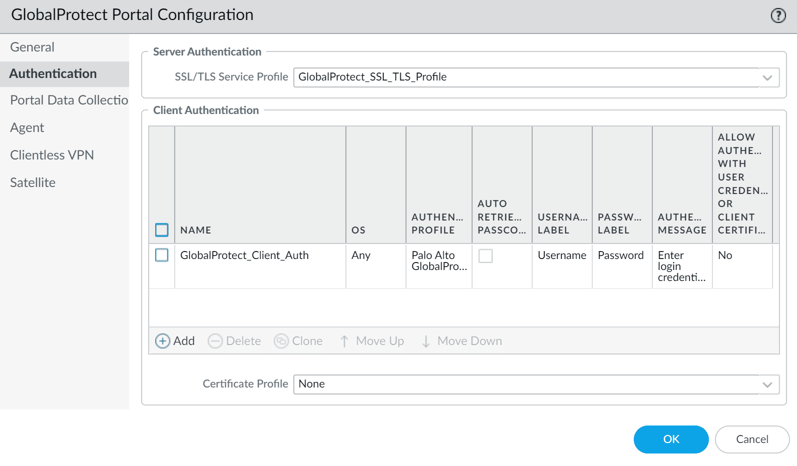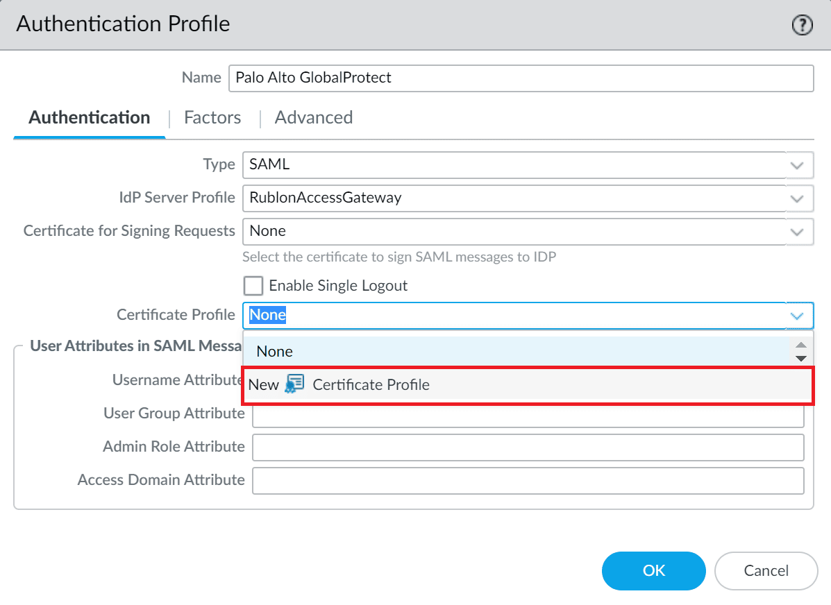 | Authentication Profile | Select the Authentication Profile you have created before. |