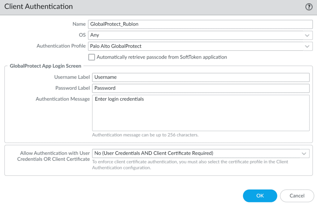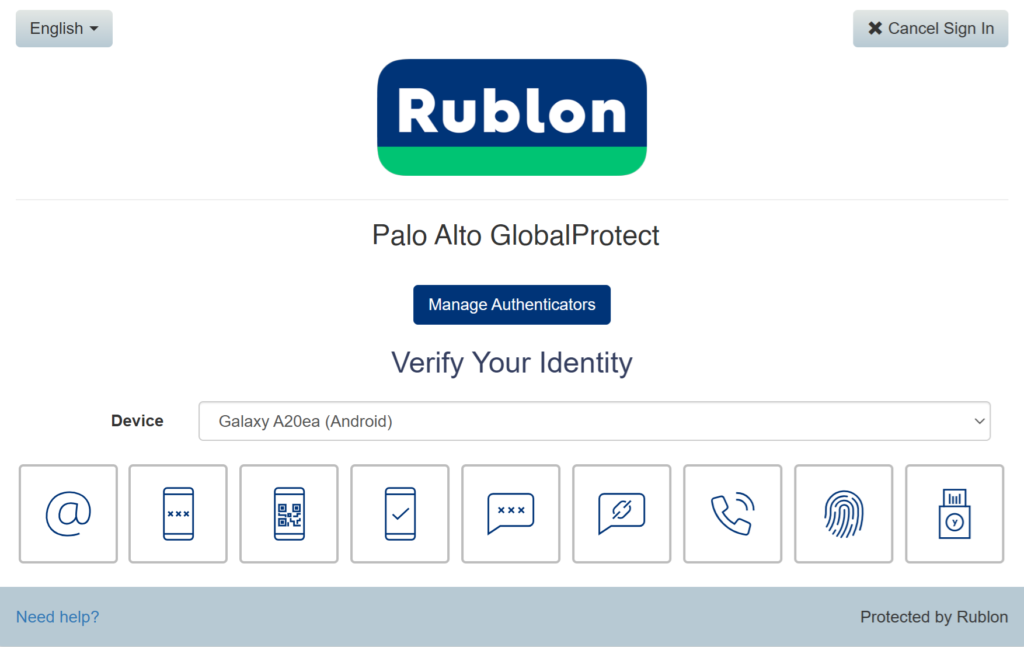 Log in to Palo Alto GlobalProtect with Rublon MFA