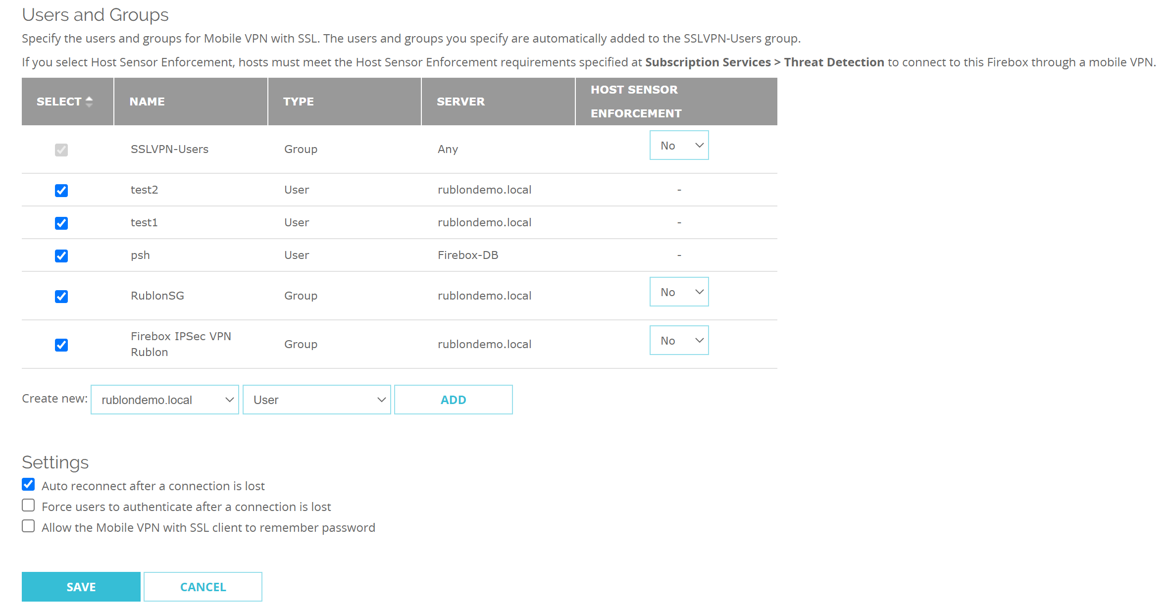 To make MFA for SSL Mobile VPN work, you have to manually add all your users to WatchGuard VPN and then allow them to use SSL VPN. Let’s do it:
