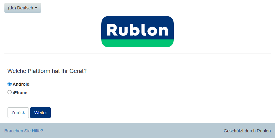 Eine Selbstregistrierung Ihres mobilen Geräts ist bei jeder Anmeldung bei einem mit Rublon integrierten Dienst möglich.