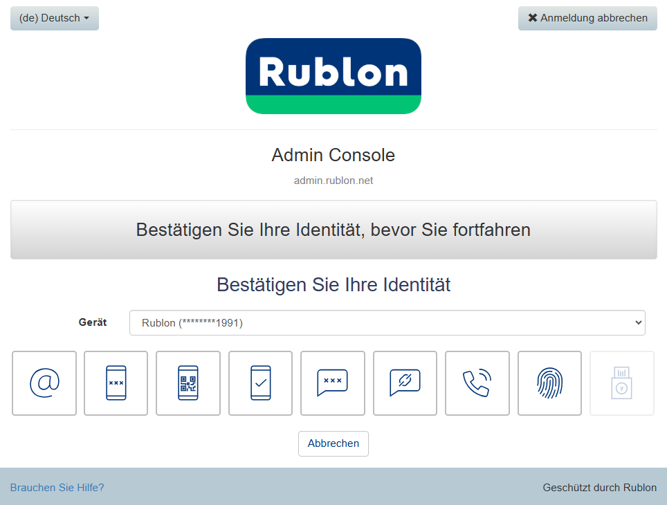 Administratoren können ebenfalls eine Drittanbieter-App zur Anmeldung in der Rublon Admin Console nutzen.