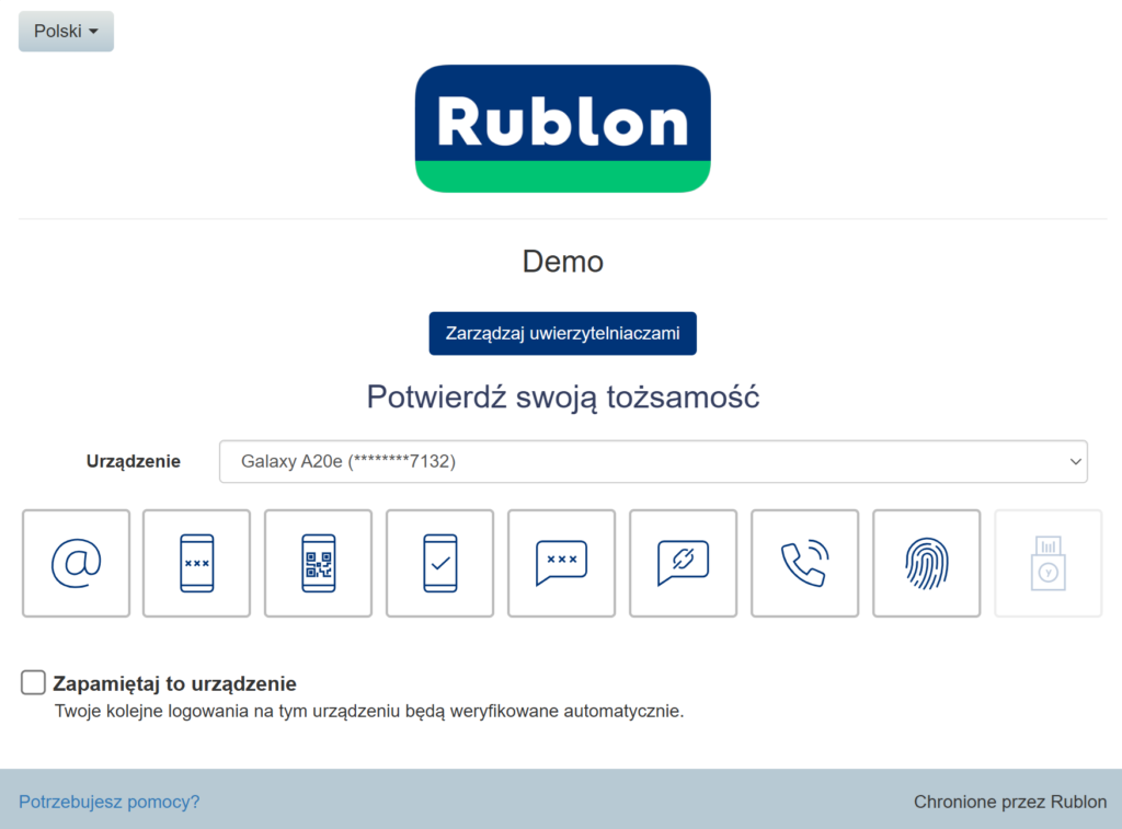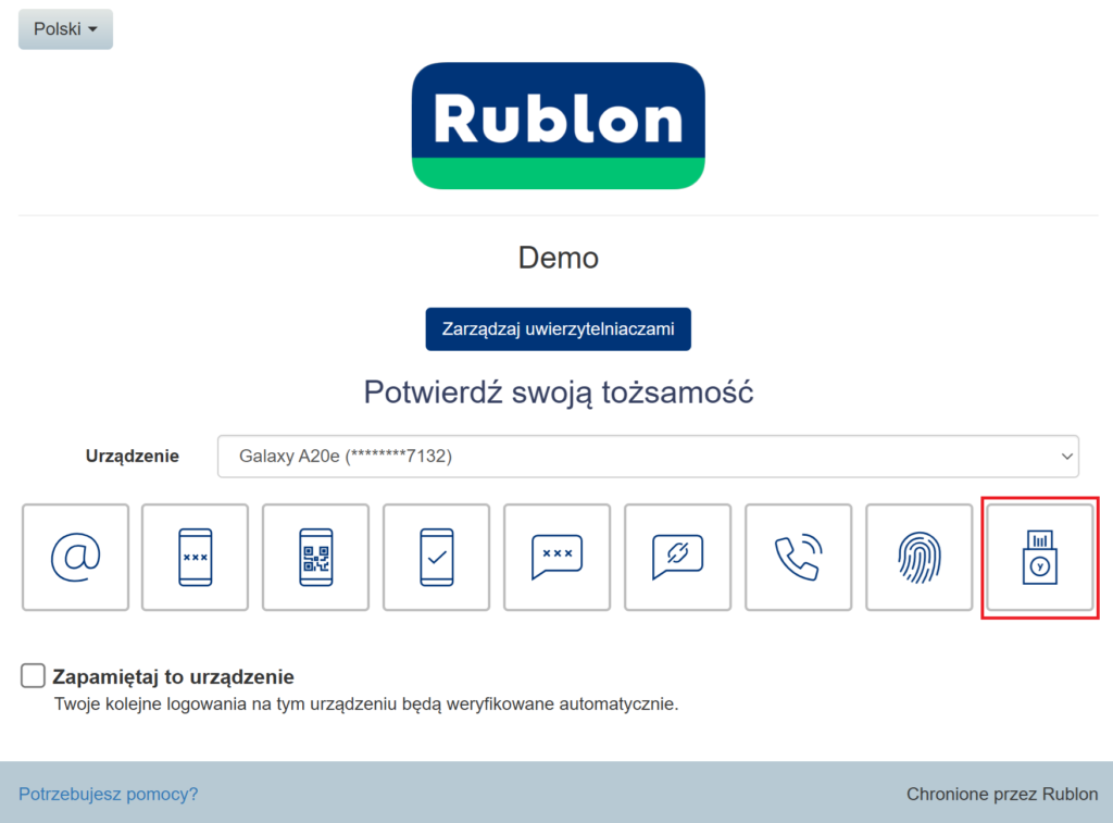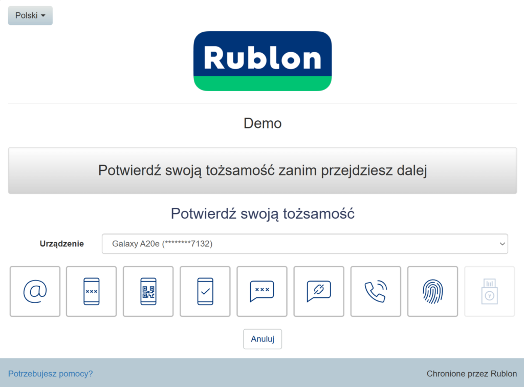 5. Aby potwierdzić swoją tożsamość, wybierz jedną z dostępnych metod uwierzytelniania.