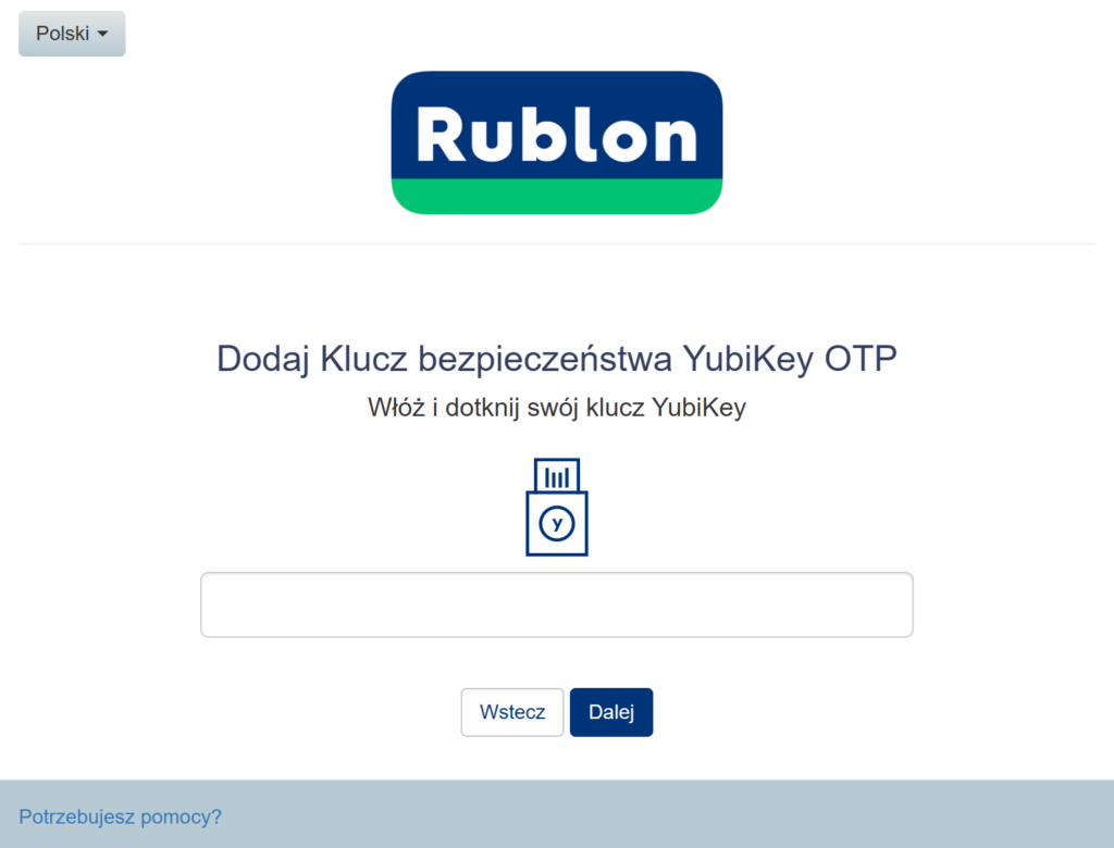 Zaloguj się za pomocą swojego klucza bezpieczeństwa YubiKey OTP