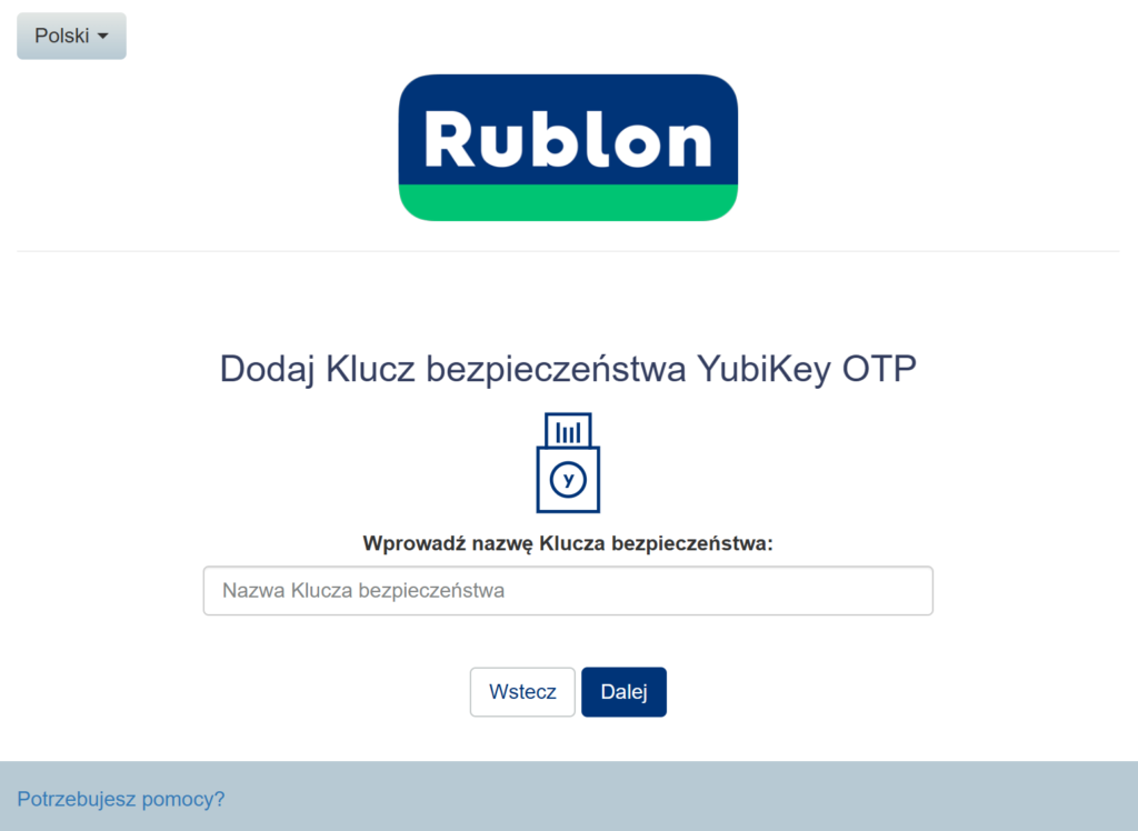10. Wprowadź nazwę dla swojego klucza YubiKey OTP i kliknij Dalej.