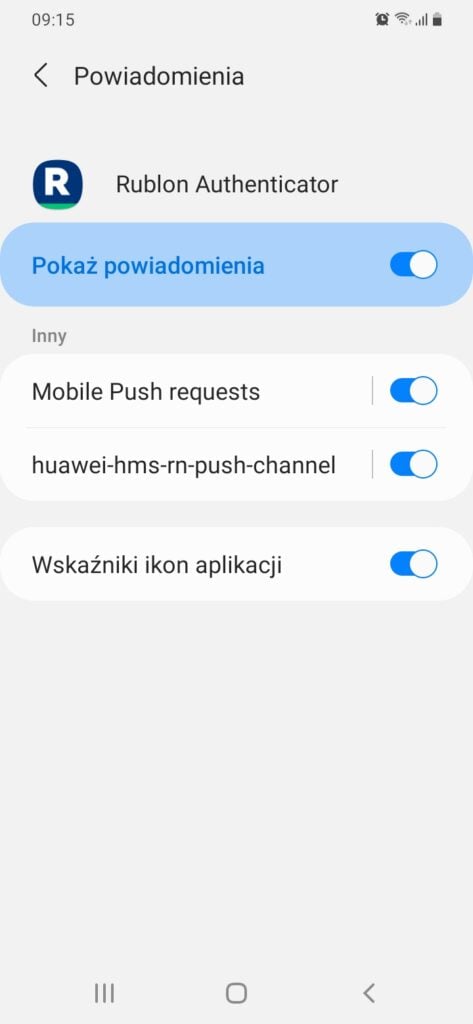 Sprawdź, czy powiadomienia są włączone dla Twojej aplikacji Rublon Authenticator.