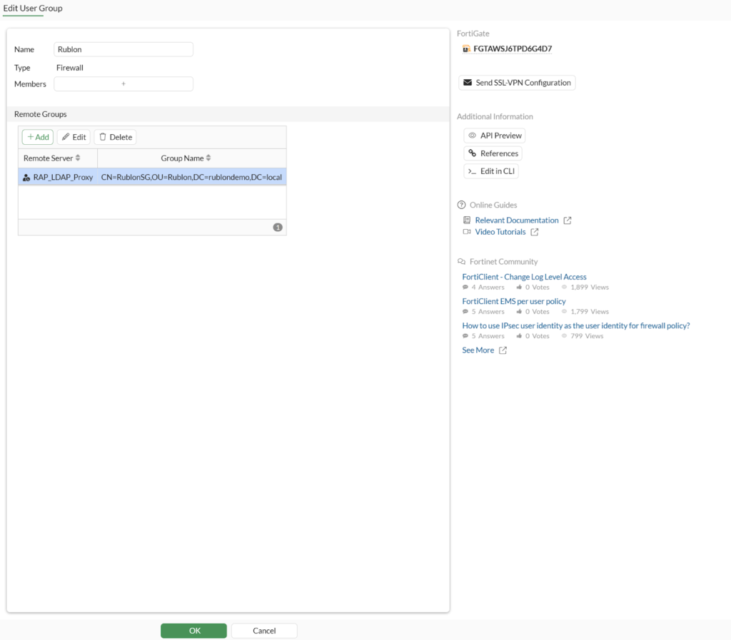 Dodanie serwera Rublon Authentication Proxy jako serwera LDAP w Fortinet FortiGate