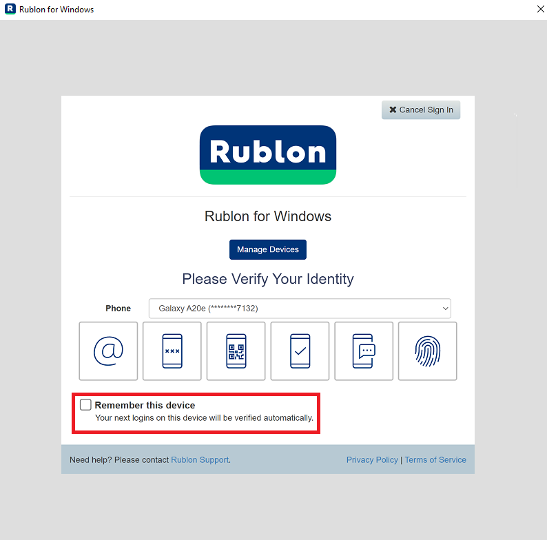 Remembered Devices is readily available for you if you use Rublon for Windows 2.4.0 or later.
