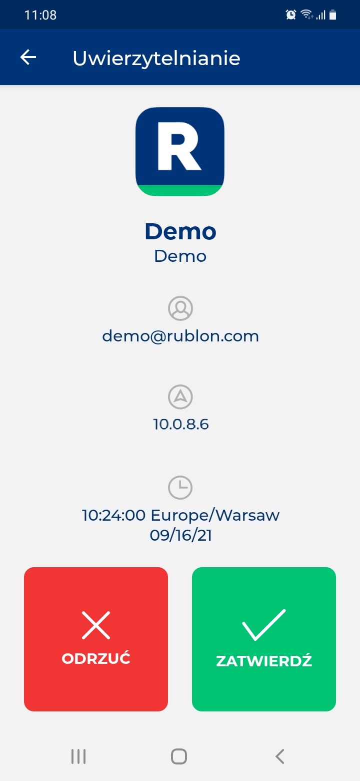 - Użytkownik zarejestrował aplikację Rublon Authenticator