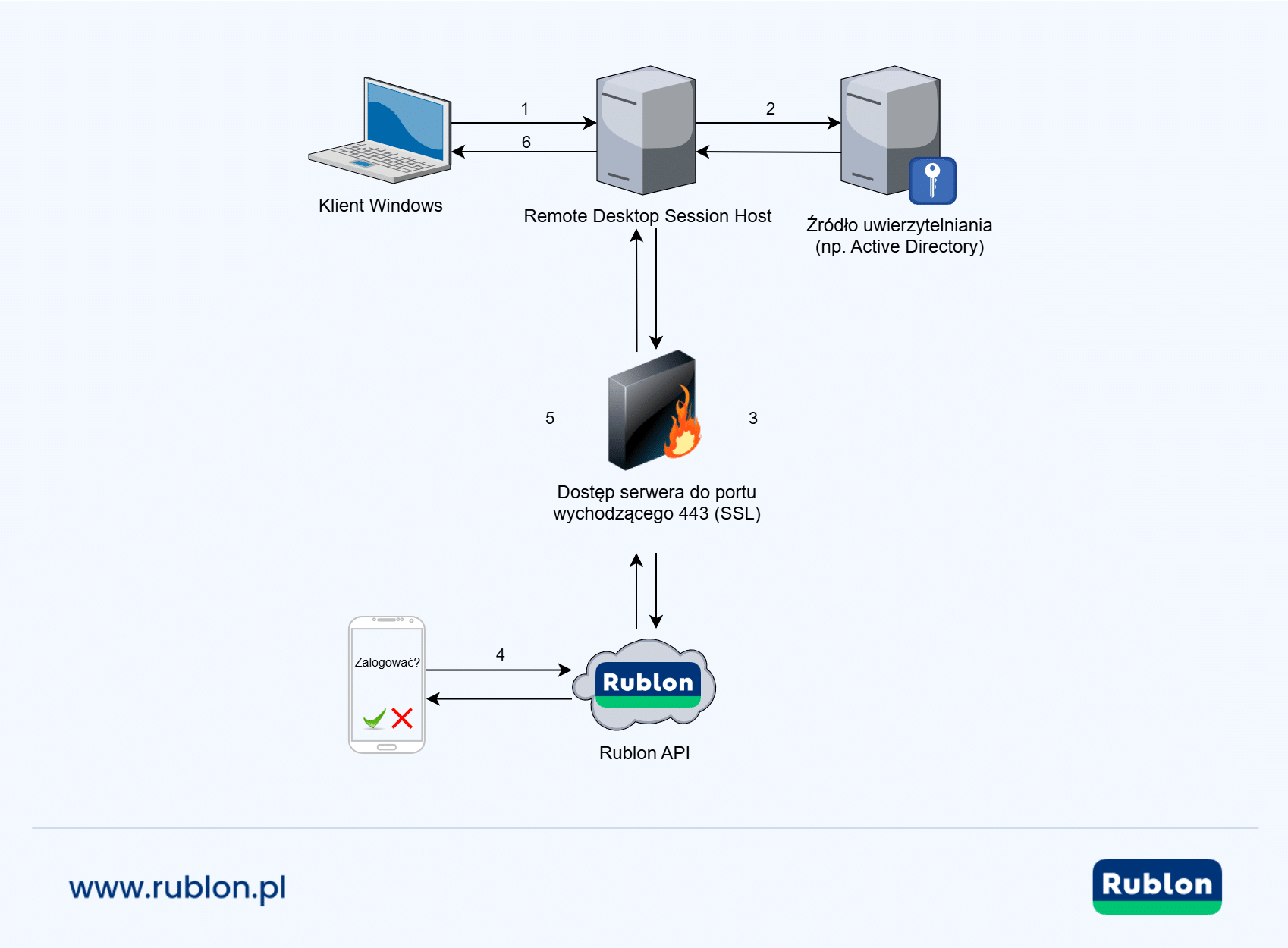 Uwaga: Jeśli szukasz sposobu na integrację platformy Rublon z usługami pulpitu zdalnego (Remote Desktop Services), zapoznaj się z dokumentacjami integracji Rublon MFA for Remote Desktop Gateway oraz Rublon MFA for Remote Access Web Access.