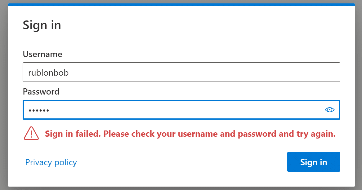 If your authentication via RD Web Client fails, you will see the following warning message: