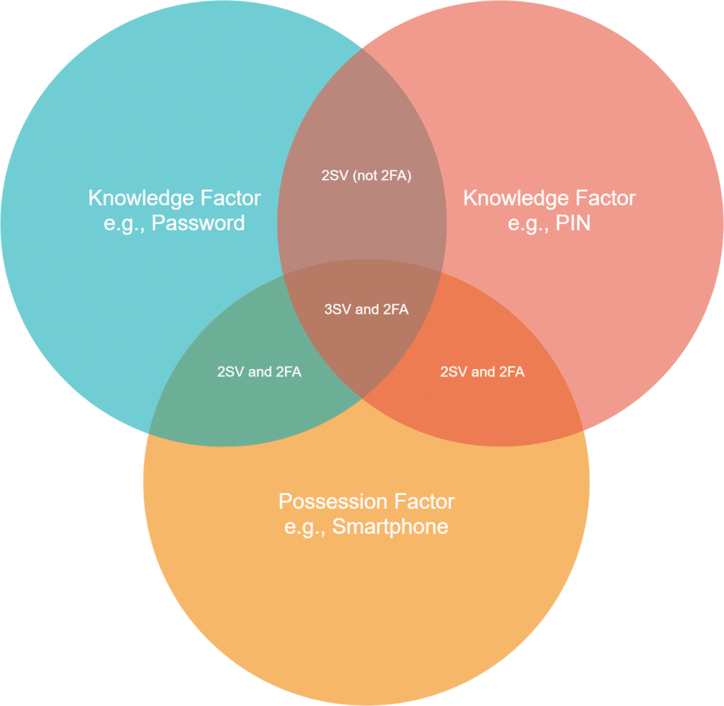 - A process of authentication that uses the Knowledge Factor and the Possession Factor is both 2SV and 2FA.