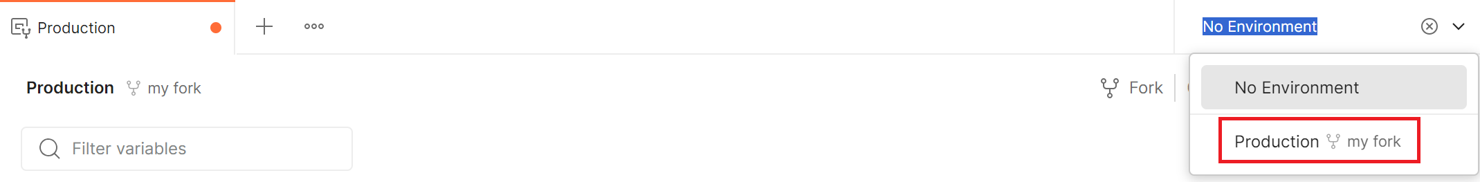 9. To use the Production environment, select Production from the dropdown in the upper right corner.