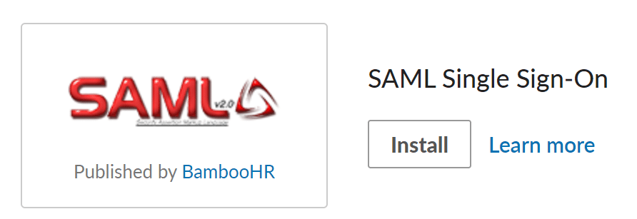 4. Scroll down, locate SAML Single Sign-On and click Install. A new form will appear.