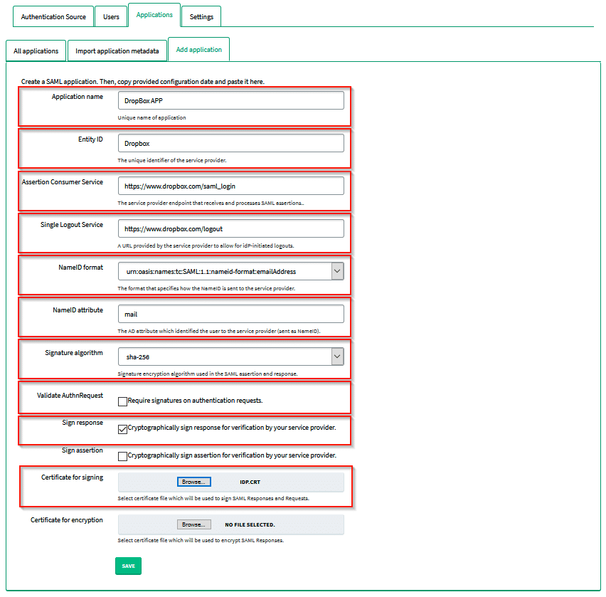 - Assertion Consumer Service: https://www.dropbox.com/saml_login