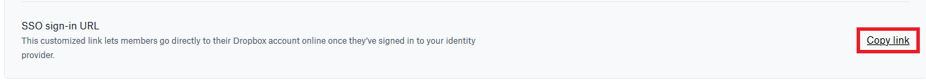 1. Open your browser and navigate to the SSO sign-in URL that you can find in your Dropbox settings: